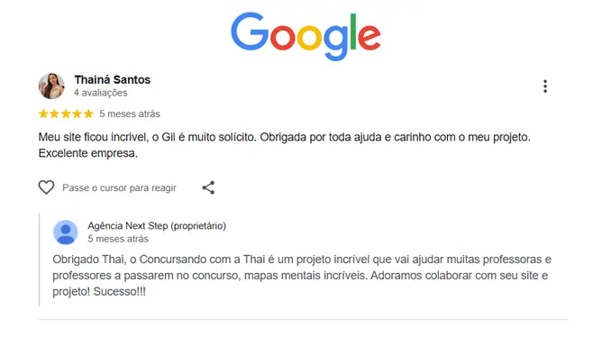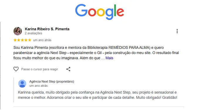 Depoimentos dos clientes no Google Meu Negócio